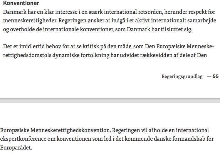 - regeringens kritik af Den Europæiske Menneskerettighedskonvention og Den Europæiske Menneskerettighedsdomstol